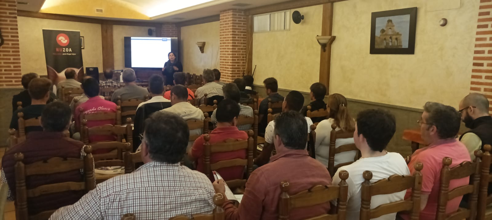 En esta jornada conjunta, donde se reunieron unos 40 profesionales del sector porcino, Nuzoa estuvo representada por Esteban y Esther, y Laboratorios Zotal estuvo representada por Ana Blanca.
