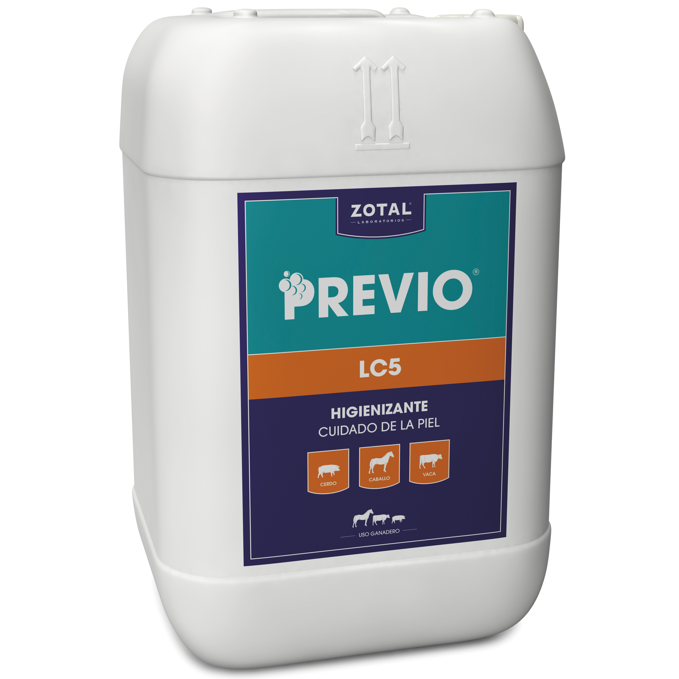 PREVIO® LC5 SOLUCIÓN LIMPIADORA es un producto concentrado que está indicado para la limpieza e higiene de la piel de los animales, especialmente porcinos, bovinos y équidos. Eficaz frente a gérmenes Gram+ como Staphylococcus spp, Streptococcus spp, Enterococcus spp, y frente a Gram- como Salmonella spp., E. coli, etc.
