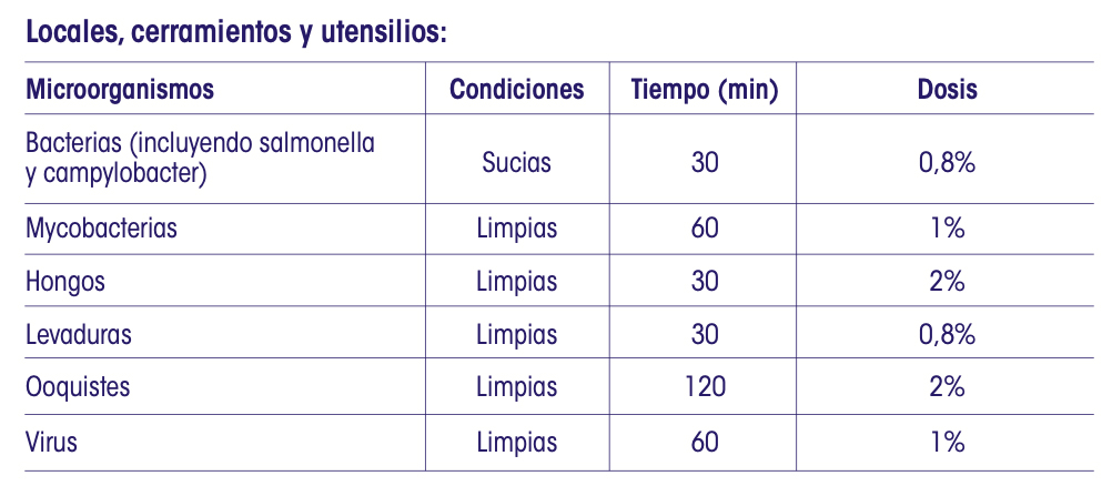 – Dilución de 100 ml por metro cuadrado en superficies no porosas.